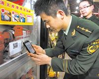 22日,海曙消防大隊警官在測試南塘老街商鋪的“消防二維碼”布點與終端的聯(lián)動情況。當(dāng)天,南塘老街一期200多個消防設(shè)施全部貼上二維碼。據(jù)介紹,該二維碼里存儲著消防設(shè)施、消防通道、維護保養(yǎng)、年檢日期等情況和數(shù)據(jù),并用“消防安全巡查平臺”的專用手機掃描二維碼,對該區(qū)域的消防安全實施信息化監(jiān)控。(寧波日報)