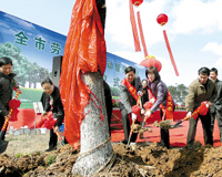 日前,市總工會組織了50名國家、省、市級勞模和五一勞動獎章獲得者在鎮海區莊市街道植樹。當天,我市“勞模林”在該街道正式動工。“勞模林”一期工程占地9620平方米,除種植觀賞樹木外,周邊還將修建休閑廣場、弧形景觀廊等,計劃年內完工并向市民開放。(寧波日報)