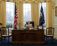 60歲的美國男子韋德癡迷收集白宮紀念品,包括總統用過的家具和坐過的汽車。據報道,韋德收集了上萬件白宮紀念品,總價值超過30萬美元。2004年,韋德在自己家里仿造白宮的總統辦公室建了一間“迷你版”的辦公室。他雇了250名工人花了8個月時間建造這間辦公室,共花費了25萬美元。(中國新聞網)
