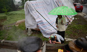 鏡頭記錄雨中災(zāi)區(qū)的震后生活