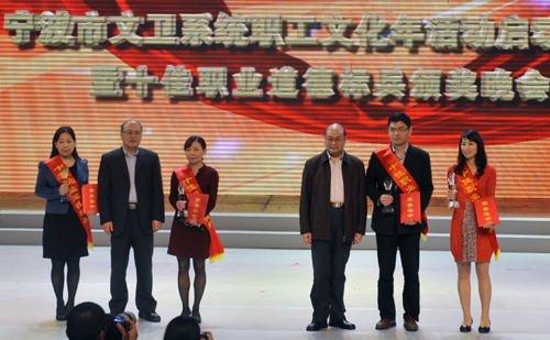 中國寧波網5月7日訊(記者陳冬冬)今天晚上,寧波市文衛系統職工文化年活動啟動儀式在歌舞《綻放》中拉開帷幕,這標志著市文衛工會打造文化年活動全力推進。市總工會黨組書記、常務副主席施恩庭,市文化廣電新聞出版局黨委書記、局長陳佳強,市文聯黨組書記、副主席鄒大鳴共同啟動職工文化年活動。來自系統各主管局、集團的分管領導和各基層單位職工代表共400多人參加。與此同時,寧波市醫療中心李惠利醫院ICO主任金雨虹、寧波市第一醫院神經外科當家人高翔、寧波日報報業集團記者毛信意、寧波廣電集團記者呂霞、寧波市演藝集團有限公司虞杰等獲“十佳職業道德標兵”稱號。