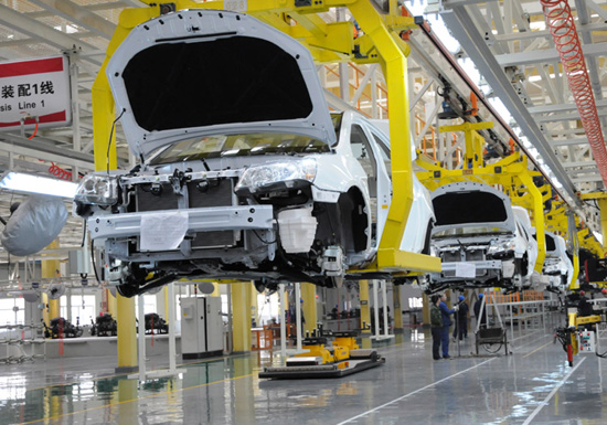 吉利杭州灣生產(chǎn)基地現(xiàn)有充壓、焊裝、涂裝、總裝四大車間,包括員工1800名,年產(chǎn)能已突破12萬輛,大概100秒鐘,即有1輛新車下線。廠房外,一個能容納3000輛小車的停車場,整齊停放著各類待售新車。