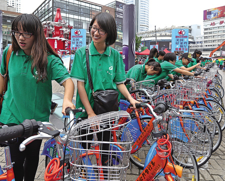 今年的城市無車日,因為有了公共自行車的“加盟”,成為寧波公共交通發展史上不同尋常的一天。昨天,公共自行車啟用儀式在天一廣場舉行,首批自行車在老三區32個網點同時亮相。
