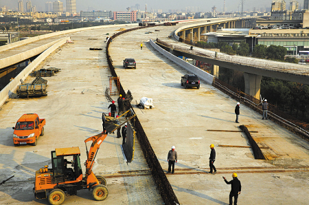 昨天,施工人員正在環(huán)城南路快速路的機(jī)場(chǎng)路立交工地施工。據(jù)寧波通途投資開發(fā)有限公司介紹,目前,東起東苑立交、西至機(jī)場(chǎng)路全長(zhǎng)9.2公里的快速路主線主體結(jié)構(gòu)施工已近尾聲,預(yù)計(jì)下月中旬貫通,并將進(jìn)入路面鋪裝、護(hù)欄安裝、匝道施工階段。
