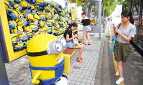 寧波:“小黃人”公交站賣萌