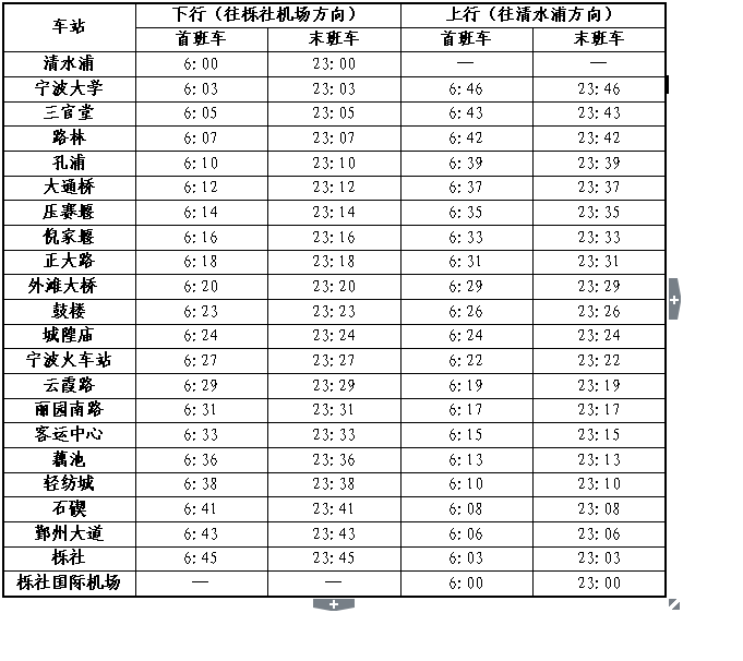2號線一期各站首末班車時間