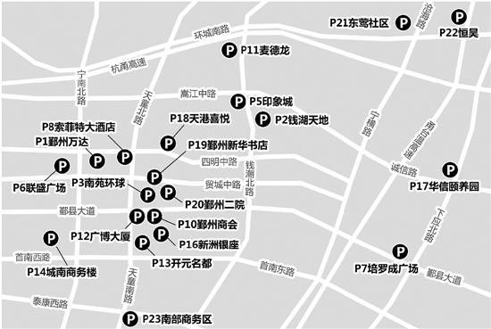 根據鄞州區城管局的統計,鄞州新城區已備案51個公共收費停車場共計16578個停車位,其中有4個停車矛盾突出區域,分別是萬達商圈、印象城商圈、鄞州二院、南部商務區。