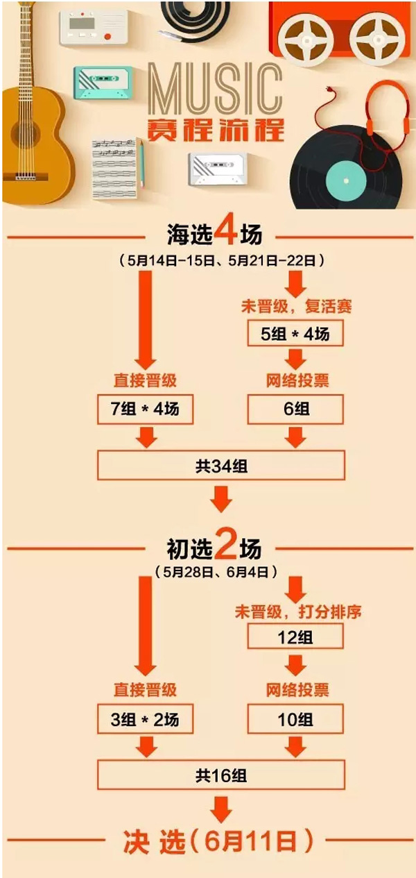 來簡單了解一下,這是一場怎樣“過五關、斬六將”的音樂大賽了吧!