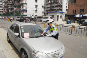 正在執勤的海曙交警大隊五中隊指導員彭峰通過警務通查詢到車主電話后,通知對方趕緊將車移走。可是等了10多分鐘,車主還是沒有現身,彭峰遂依法拍照取證給違停車輛開出罰單。