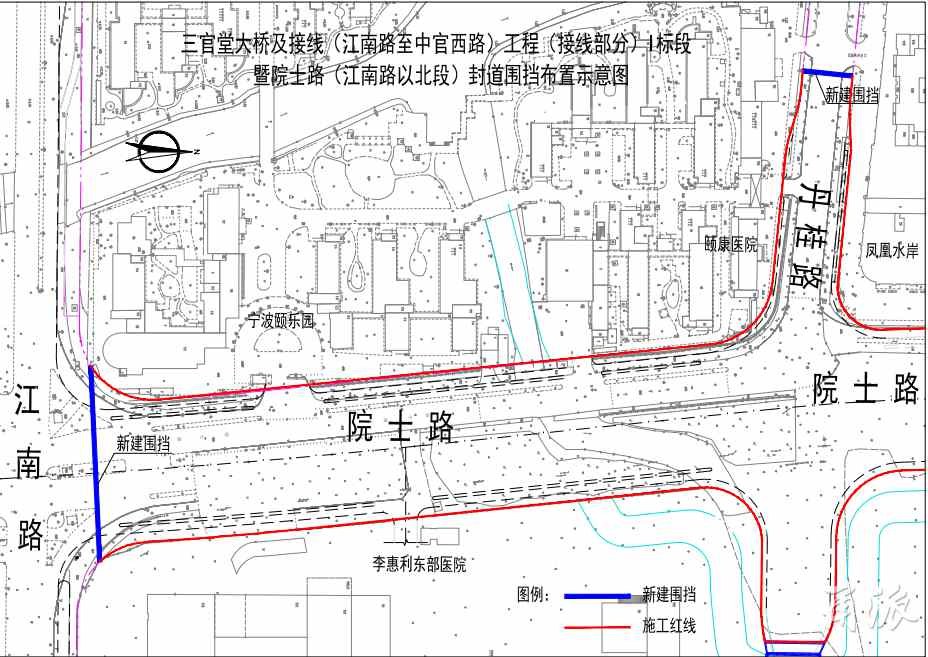 為保障三官堂大橋及接線工程I標段下步工作的順利進行及交通安全,2016年6月18日至2017年8月17日,院士路(江南路以北)將實施封道。