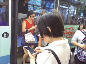 坐公交車不用再“傻等”“盲目等”。昨日,市民朱小姐在出門前先用手機查看公交車還有多長時間到站,然后掐著時間點到站乘車。