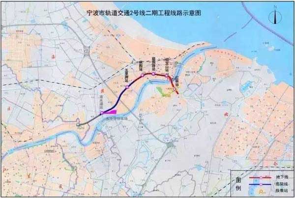 軌道交通2號線自鄞州古林,線路沿奉化江、甬江城市發展水軸布置,貫穿三江片,經鎮海直至北侖。
