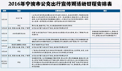 今天早上8:30,市委、市政府將舉行“公交出行宣傳周”啟動活動,本次活動首次在東部新城文化廣場舉行。宣傳周期間,我市將開展一系列“優(yōu)選公交綠色出行”為主題的活動(具體活動詳見右表),引導市民綠色出行的同時,公交志愿者還將進社區(qū)、廣場、寫字樓等,面對面聽取群眾呼聲。