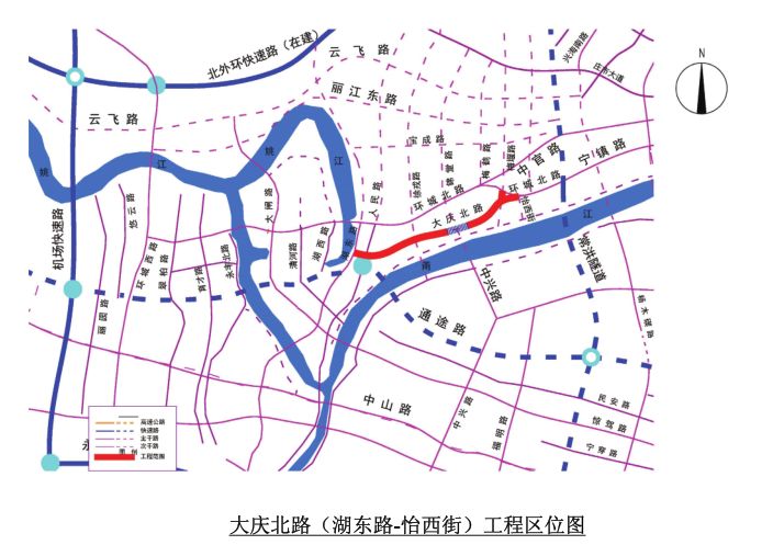 大慶北路(湖東路-怡西街)道路位于甬江北岸,區(qū)位上西連灣頭RBD,東連北高教園區(qū)。隨著中興大橋跨江通道進入實施階段,甬江兩岸迎來了整體開發(fā)的良好機遇。該工程的建設(shè)將極大的完善區(qū)域的路網(wǎng),疏解周邊尤其是中興大橋的跨江交通流,以及對沿線地塊的開發(fā),對甬江北岸濱江商務(wù)休閑區(qū)的打造有著重要的意義。