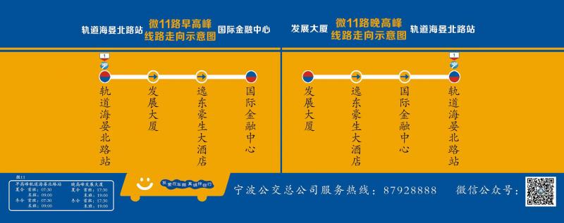 從今天起,寧波公交對(duì)微11路進(jìn)行加密班次和延時(shí)服務(wù),以更好的滿(mǎn)足中央廣場(chǎng)金融片區(qū)周邊上班族的乘車(chē)需求。