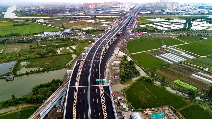 其中,機(jī)場快速路南延南段工程橫跨鄞州、奉化,北起繞城高速,南至奉化區(qū)岳林東路,全長14.4公里,采用“主線高架+地面輔道”的建設(shè)形式,標(biāo)準(zhǔn)段設(shè)置雙向6車道,高架主線設(shè)計時速80公里每小時,地面輔道設(shè)計時速50公里每小時。