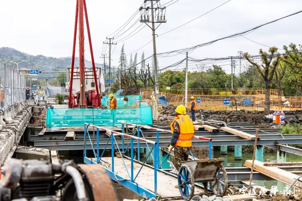 日前,鄞縣大道東吳段改造施工如火如荼,三個橋梁加固提升同時開展樁基作業。