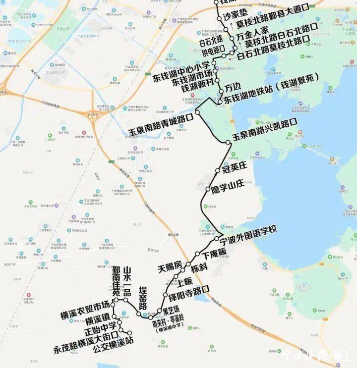 2、撤銷因臨時(shí)改道增設(shè)的橫溪廣電站、橫溪鎮(zhèn)政府、豐樂苑小區(qū)、孔家潭、冠英莊北站點(diǎn)及紅林↓、莫枝北路鄞縣大道口↑站點(diǎn)。