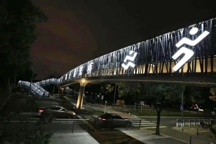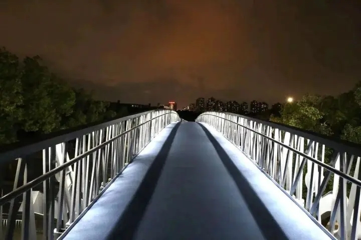 院士星光橋橋長約130米,寬3米,橋梁主體為鋼結(jié)構(gòu),設(shè)有南北方向坡道及雙梯道。院士公園作為城區(qū)內(nèi)一座綜合性公園,周邊居民游憩夜跑需求較大,此橋貫通之前,公園主園路被首南東路阻隔,而首南東路作為鄞州區(qū)重要的城市次干道,車流量較大,居民通過時存在較大的交通安全隱患。此橋開放后,將貫通公園主園路,不僅方便了居民活動,同時保障了橋下道路交通順暢及安全。