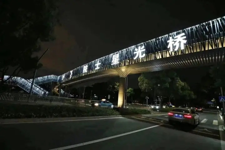 院士星光橋目前處在試通行調(diào)試階段,為了過往行人安全,請市民朋友有序通過天橋,嚴禁攀爬、鉆越、損毀欄桿和電器。