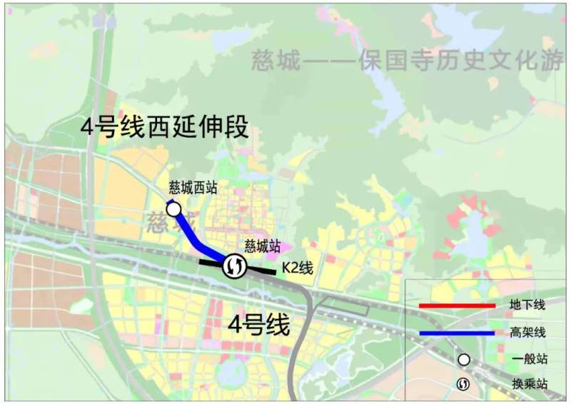 為進一步促進慈城區域的發展,按照第三期建設規劃批復,軌道交通4號線西延段設一站一區間,從4號線慈城站引出后,沿寧慈西路向西北方向敷設,敷設至寧慈西路與廟灣路交叉口,在路口東側設置終點站慈城西站,線路全長約1.77公里。