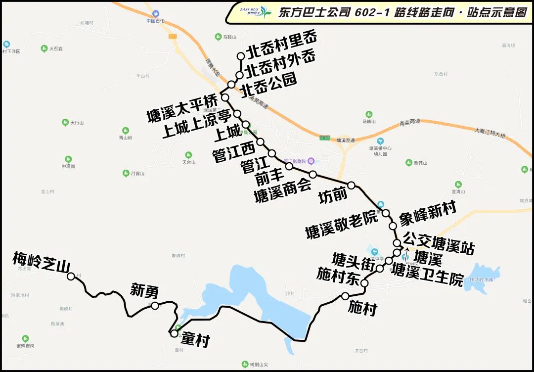公交塘溪站至梅嶺芝山的602-1路調(diào)整為北岙村里岙至梅嶺芝山運(yùn)營(yíng)