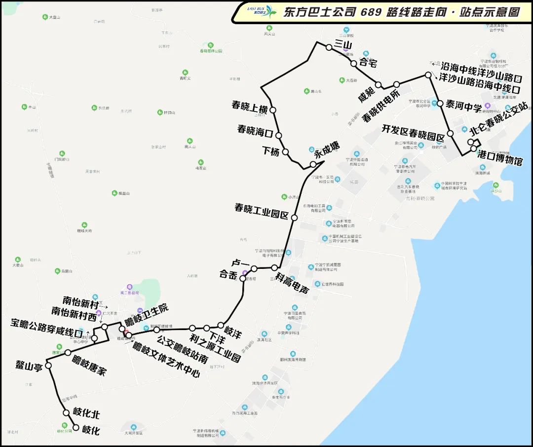 一、岐化至公交濱海站689路調(diào)整為岐化至北侖春曉公交站運(yùn)營(yíng)