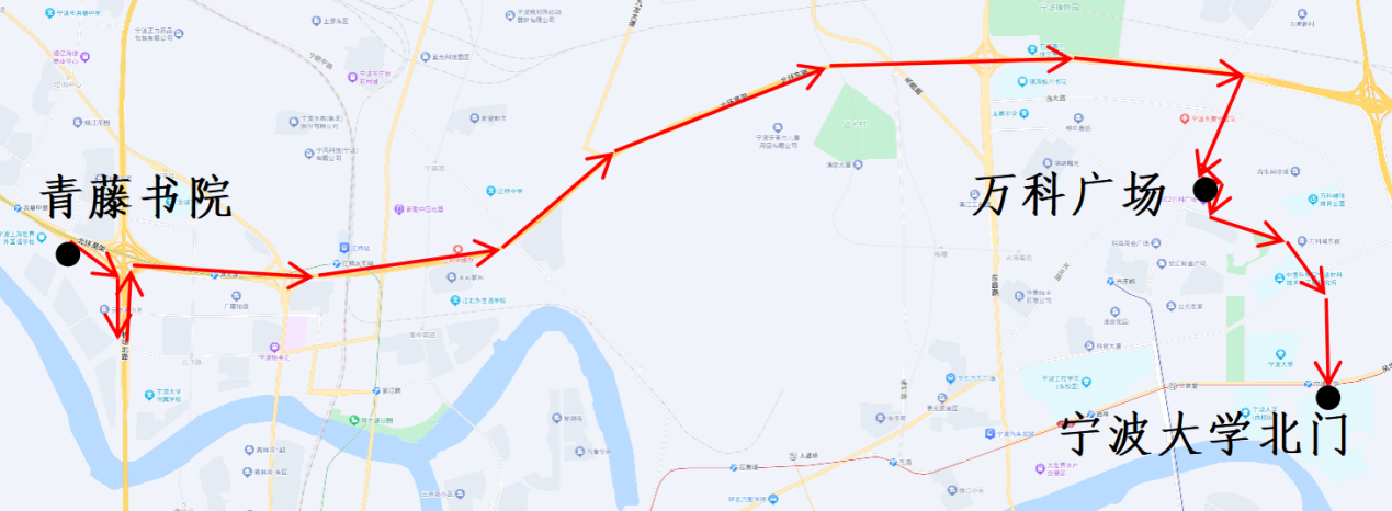站點設置:寧波大學北門↑、萬科廣場、青藤書院