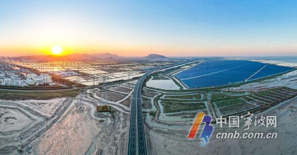 東段起點位于杭州灣跨海大橋南接線附海樞紐,終點位于鎮海區后海塘東北側,設置威海互通立交接威海路,全長40.518公里。