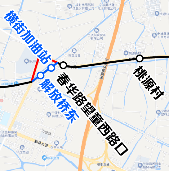 1.按原線運營至望童路鄞縣大道口后,改走鄞縣大道、橫街南路,橫街南路望童路口后恢復原線運營至望童路橫街環鎮東路口后,改走橫街環鎮東路、春華路、廣澤路,廣澤路望童路口后恢復原線運行。