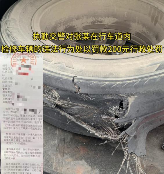 最終,高速交警對其在行車道內檢修車輛的違法行為,作出罰款200元的處罰。