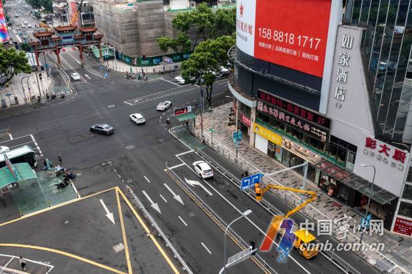 在現(xiàn)場(chǎng),記者看到告示牌已立在道路兩端,交警及市政部門(mén)正對(duì)周邊道路進(jìn)行導(dǎo)改,工人們正在緊鑼密鼓地安裝施工圍擋,還有市民特地趕來(lái)記錄下開(kāi)明街改造前的樣子。