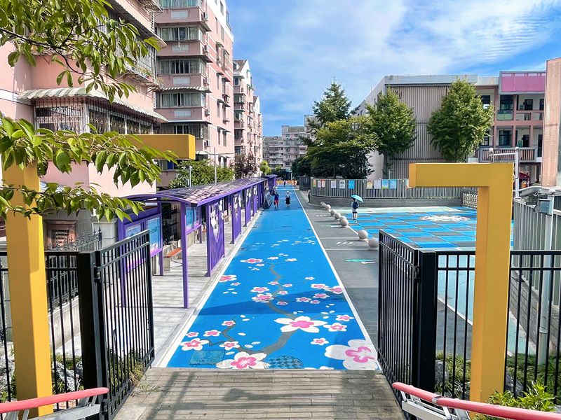 如今,鄞州以“繡花”功夫,打造了58條上學安全、放學有趣的“最美上學路”。“ 最美上學路”也從當初的單色路面1.0升級到現(xiàn)在的8.0版本,充分體現(xiàn)了“友好服務”和“文化與文明相融合”兩大理念。友好服務即兒童友好、老人友好、人居友好,既服務學校、孩子、家長,更服務街區(qū)周邊的市民。延伸出了不同顏色劃分路線、規(guī)劃接送區(qū)域,新增了風雨連廊、照明燈桿等硬件設(shè)施。