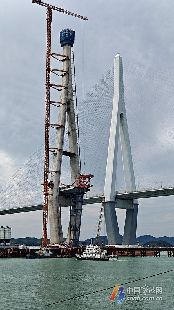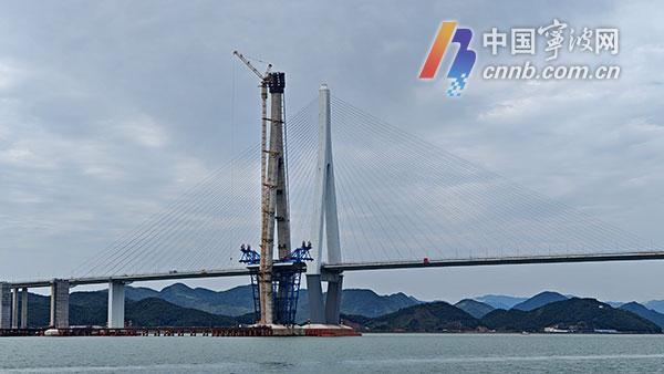 市域鐵路象山港跨海大橋主塔(左)封頂。