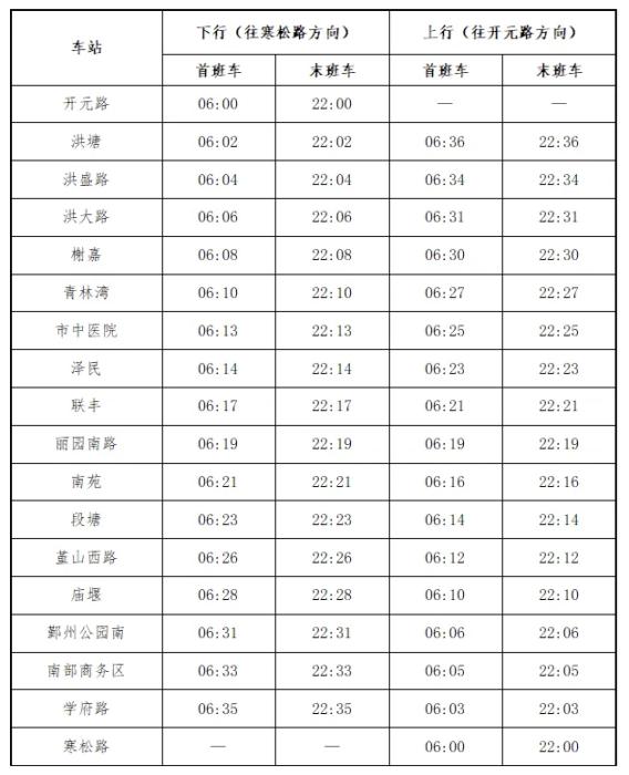 開元路站、寒松路站為8號(hào)線兩端始發(fā)站。兩端首班車發(fā)車時(shí)間為6:00,末班車發(fā)車時(shí)間為22:00,全程約38分鐘。開通初期,行車間隔為高峰期6分鐘、平峰期8分鐘,低峰期10分鐘。
