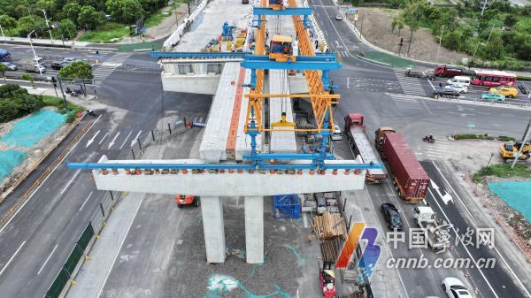 8月6日下午,在慈溪中橫線-西二環(huán)路口附近,經(jīng)過連續(xù)吊裝作業(yè),重達78噸、長約25米的小箱梁精準架設在112跨墩位上,標志著中橫線快速路(二期)工程進入橋梁上部結構施工階段,項目建設取得重大進展。