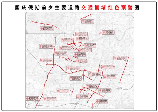 城區快速路方面,機場高架節前兩天均會有出城大流量;南環高架、機場路南延預計明天下午2點后大流量特征會更加明顯。