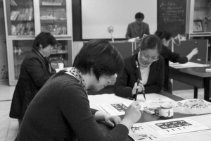 中國(guó)寧波網(wǎng)訊 本學(xué)期開始,浙江寧波市解放南路小學(xué)加強(qiáng)對(duì)教師進(jìn)行書法培訓(xùn),特意從當(dāng)?shù)厣鐓^(qū)書畫學(xué)院請(qǐng)來老師,對(duì)全體教師進(jìn)行書法培訓(xùn)。沒想到,這一培訓(xùn)推出,就在老師們中間掀起了一股學(xué)習(xí)書法的熱潮。