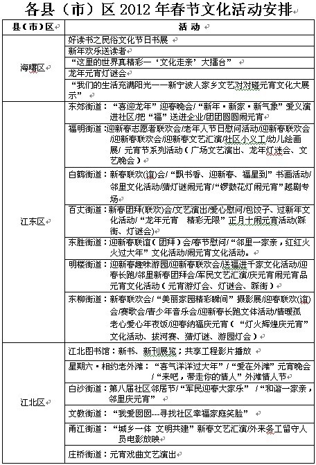 此外,各縣(市)區(qū)也安排了形式多樣、內(nèi)容豐富的春節(jié)文化活動,讓廣大市民在愉快輕松中迎來新的一年。