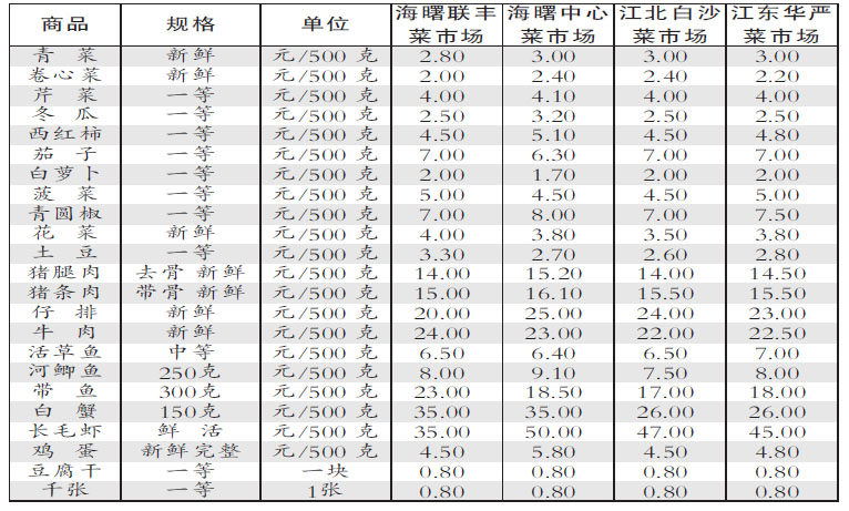 據(jù)監(jiān)測,與上期相比,本期列入民生價(jià)格信息公開范圍的114家超市的49種商品價(jià)格總水平上漲2.30%,4家農(nóng)貿(mào)市場的35種商品價(jià)格總水平微幅下跌0.68%。本期超市商品價(jià)格總水平上漲2.30%。在49個(gè)監(jiān)測品種中,價(jià)格周環(huán)比上漲的有17種、下跌的有16種、持平的有16種。從種類來看,蔬菜、肉、魚類均價(jià)分別上漲7.39%、4.06%、3.24%;食用油、蛋類均價(jià)分別下跌0.37%、0.27%。從具體品種來看,芹菜、西紅柿、土豆、青菜、胡蘿卜價(jià)格分別上漲40.50%、23.01%、15.57%、11.31%、10.36%;韭菜、黃瓜、西瓜價(jià)格分別下跌16.29%、8.68%、3.52%。