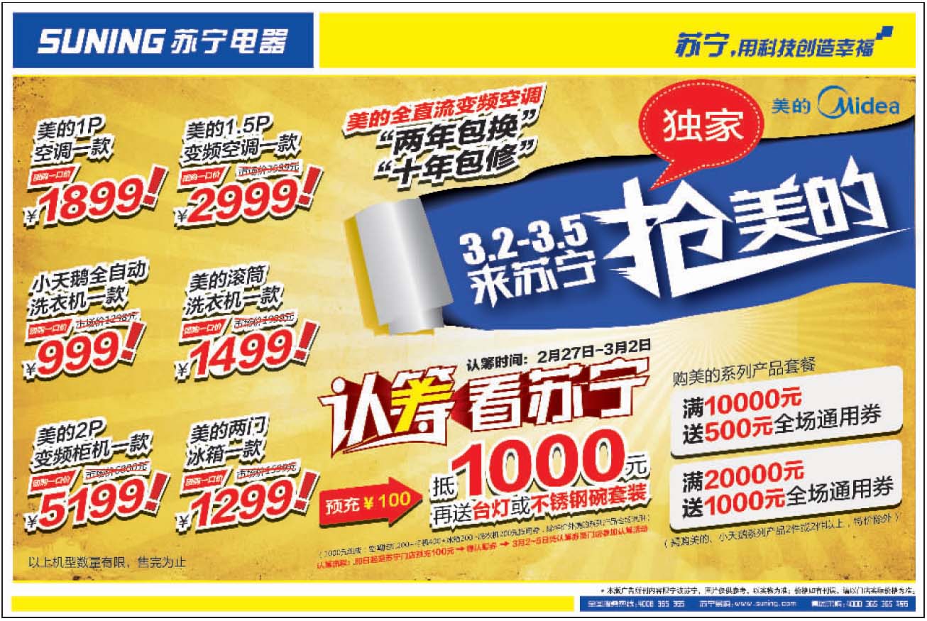 蘇寧電器3月2日-5日搶美的活動(dòng)
