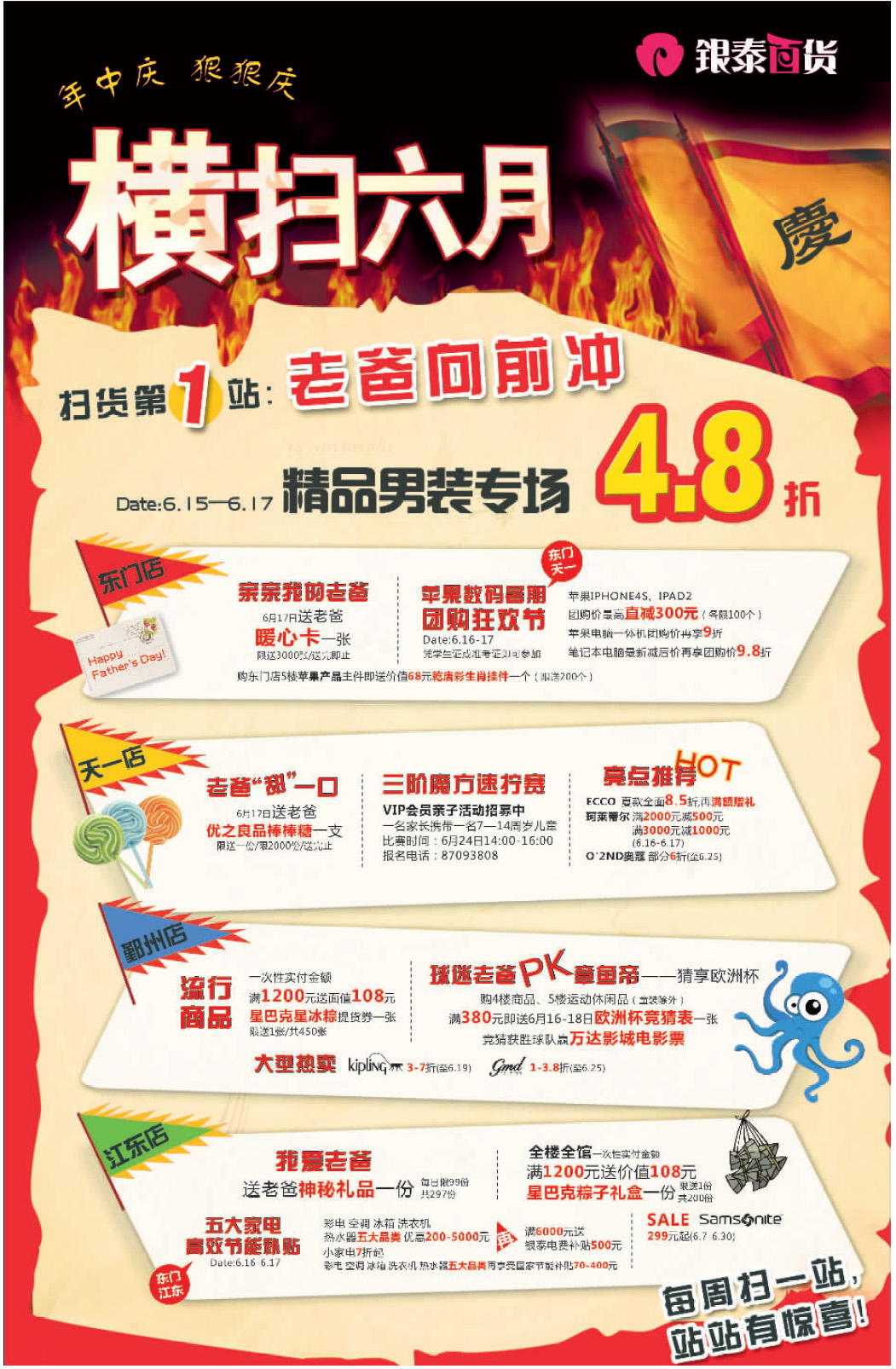 銀泰百貨6月15日-17日打折信息