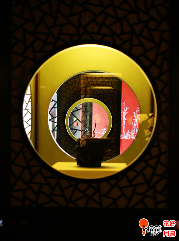 透過兩個(gè)觀察櫥窗,看到門外的花窗,感覺到異樣的視角透現(xiàn)出不一樣的世界。