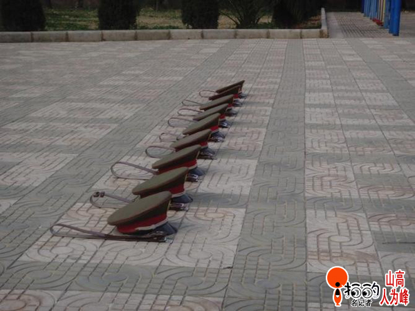 軍訓......軍帽“列隊”,整齊劃一卻不見人!呵呵!一切行動聽指揮喲(高教園區)