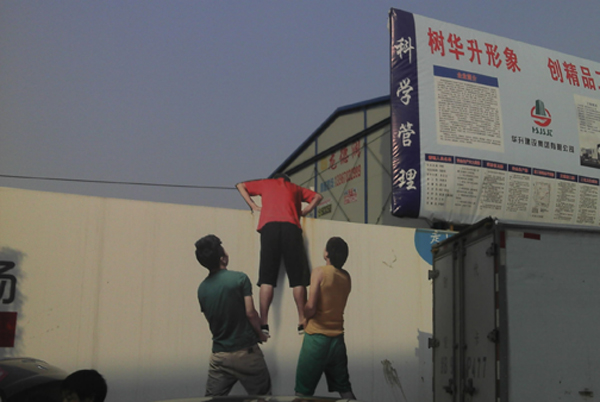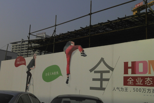 聽說里面有超市、影院,走,進去瞧瞧吧!攝于天勝花鳥市場旁一商業廣場建筑工地,四周的圍墻頗為搞笑。