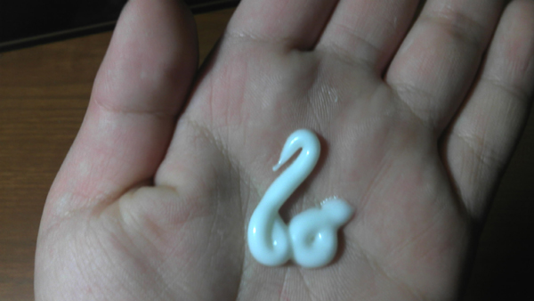 兒子洗完臉在小手中擠潤膚露,突然驚喜地告訴我,說是擠出一只潔白的“天鵝”,還真有幾份神似,呵。