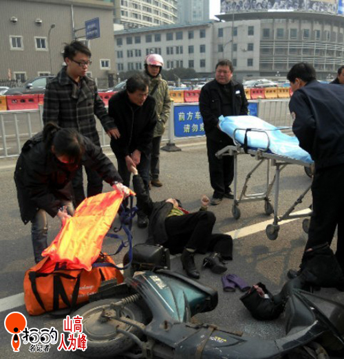 中國寧波網(wǎng)手機記者山高人為峰:3月11日(周日),甬城難得的晴天,好天氣卻沒得好心情,上午9點多,目睹了外灘大橋西逸大慶南路口發(fā)生的一起車禍......私家車與電動車相撞,騎車的大嫂車翻人仰倒地不得動彈,腰身傷得不輕......車禍猛于虎,開車的,騎車的切記,平安才是福!