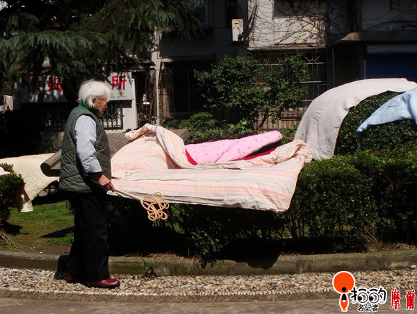 瞧,大娘這架勢,冬青樹們除了背負重壓外,看來還將承受一場“皮肉之苦”。手下留情呀!