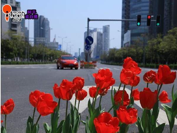 大閘路的郁金香爭先綻放,紅燈、紅跑車、紅郁金香好有一番城市休閑的味道!郁金香的花期大約有一個多月的時間,最佳的觀賞時間在4月初,大家可別錯過了!