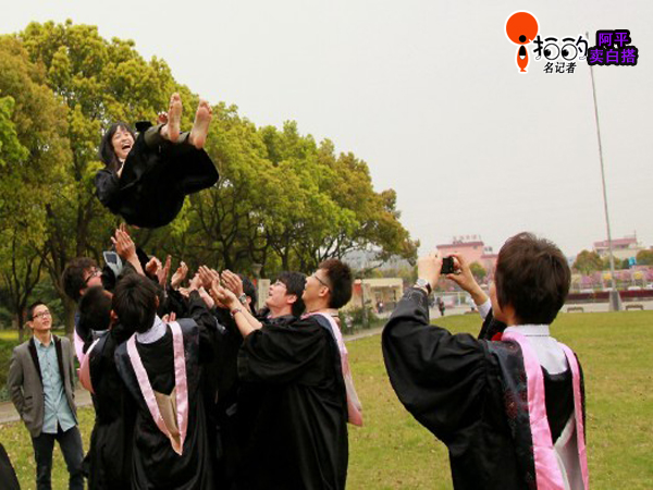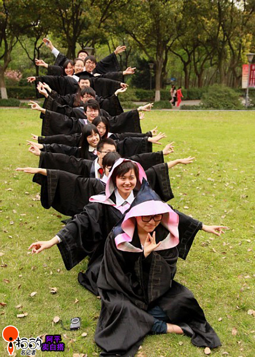 上周日,寧大的學子們在拍畢業照,瞧他們的千手觀音造型,挺可愛的。